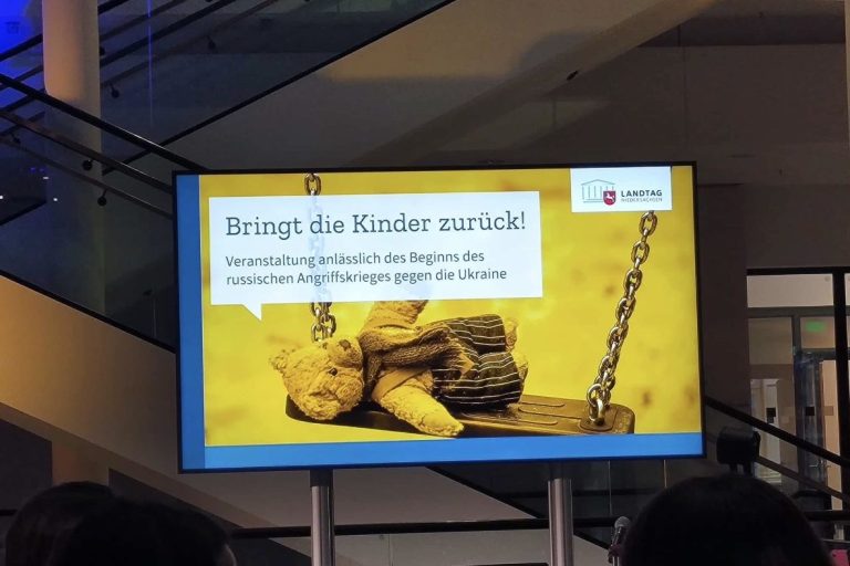 Anlässlich des 4. Jahrestages des russischen Angriffskriegs, wurde eine Delegation in den Niedersächsischen Landtag zur Veranstaltung "Bringt die Kinder zurück" eingeladen.