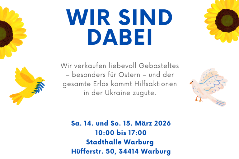 Am 14. und 15. März haben wir liebevoll Gebasteltes auf dem Flohmarkt mit Herz in der Stadthalle Warburg verkauft. Der Erlös kommt Hilfsaktionen in der Ukraine zugute.